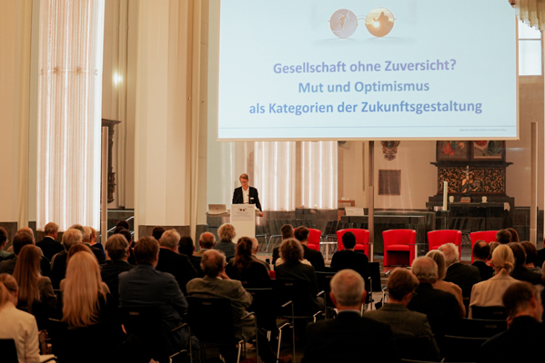 Unter dem Motto „Gesellschaft ohne Zuversicht? Mut und Optimismus als Kategorien der Zukunftsgestaltung“ gaben unsere renommierten Gäste aus Forschung, Wirtschaft, Medien und Politik interessante Einblicke nicht nur in unsere Geschichte, Gegenwart und Zukunft, sondern auch ebenso in Wissenschaft, Wirtschaft und Politik. In einer gemeinsamen Diskussionsrunde zwischen Gästen und Teilnehmenden ging es zudem um die wichtige Fragestellung, wie für unsere Gesellschaft mehr Zuversicht generiert werden kann.