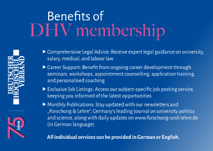 The German Association of University Professors and Lecturers (DHV) can support you with all these decisions and be your trusted career partner.